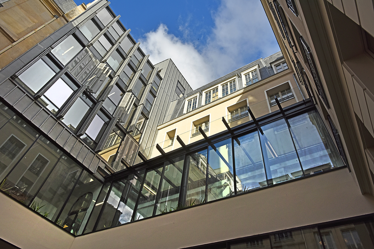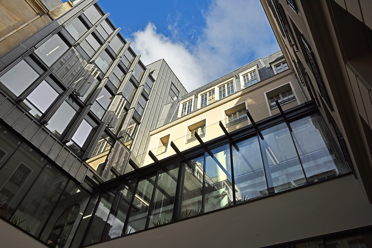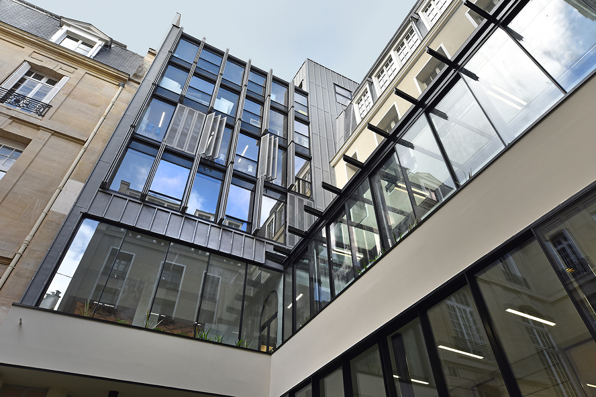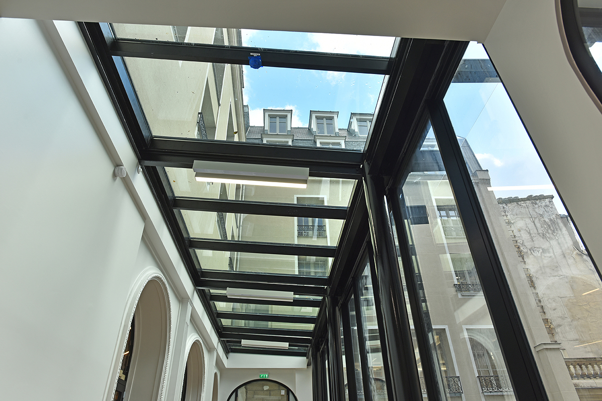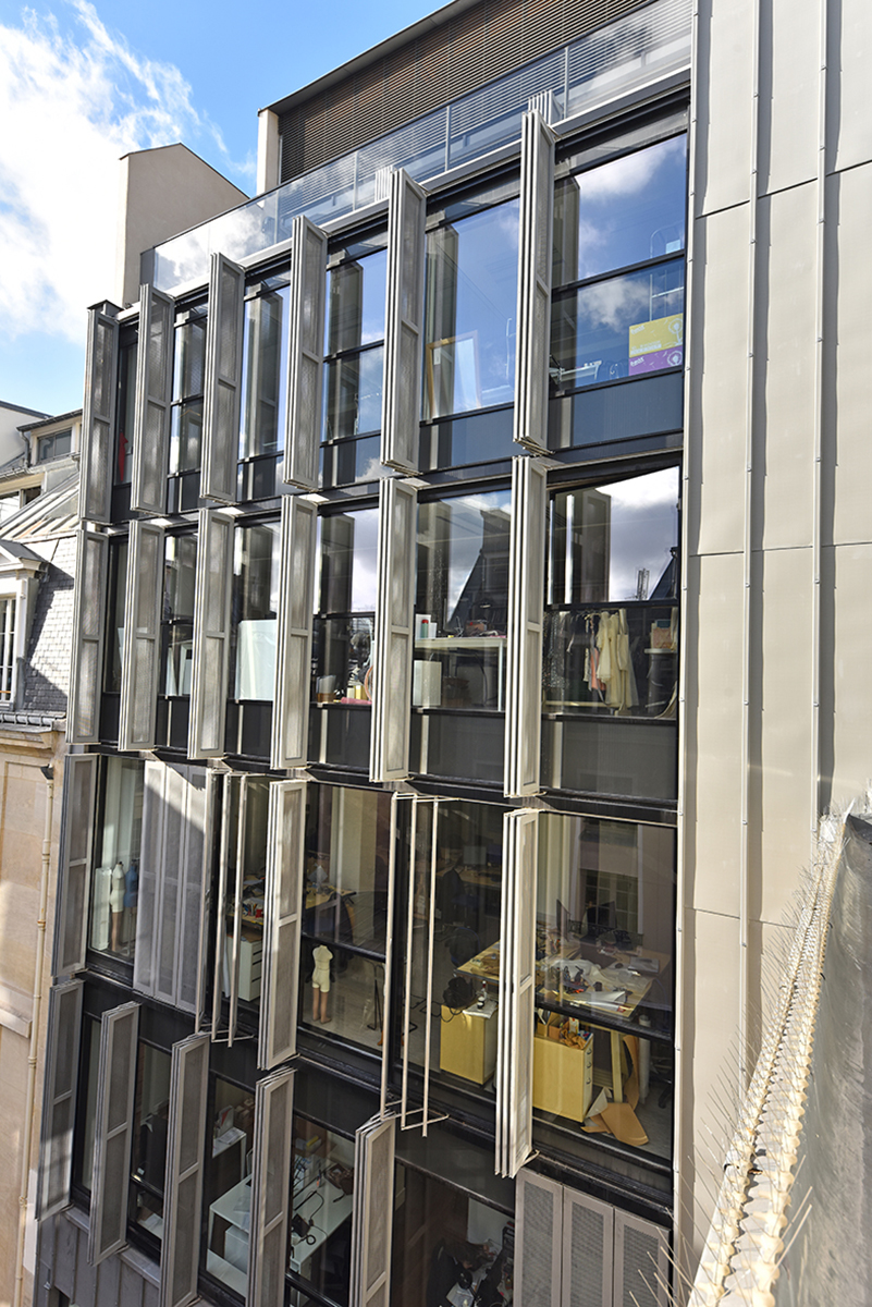 Iéna Iéna à Paris Client : Korus Date : 2018 Architecte : Vincent Herault Bureaux Paris 8ème mur rideau verrière volets pantographe Garde-corps
