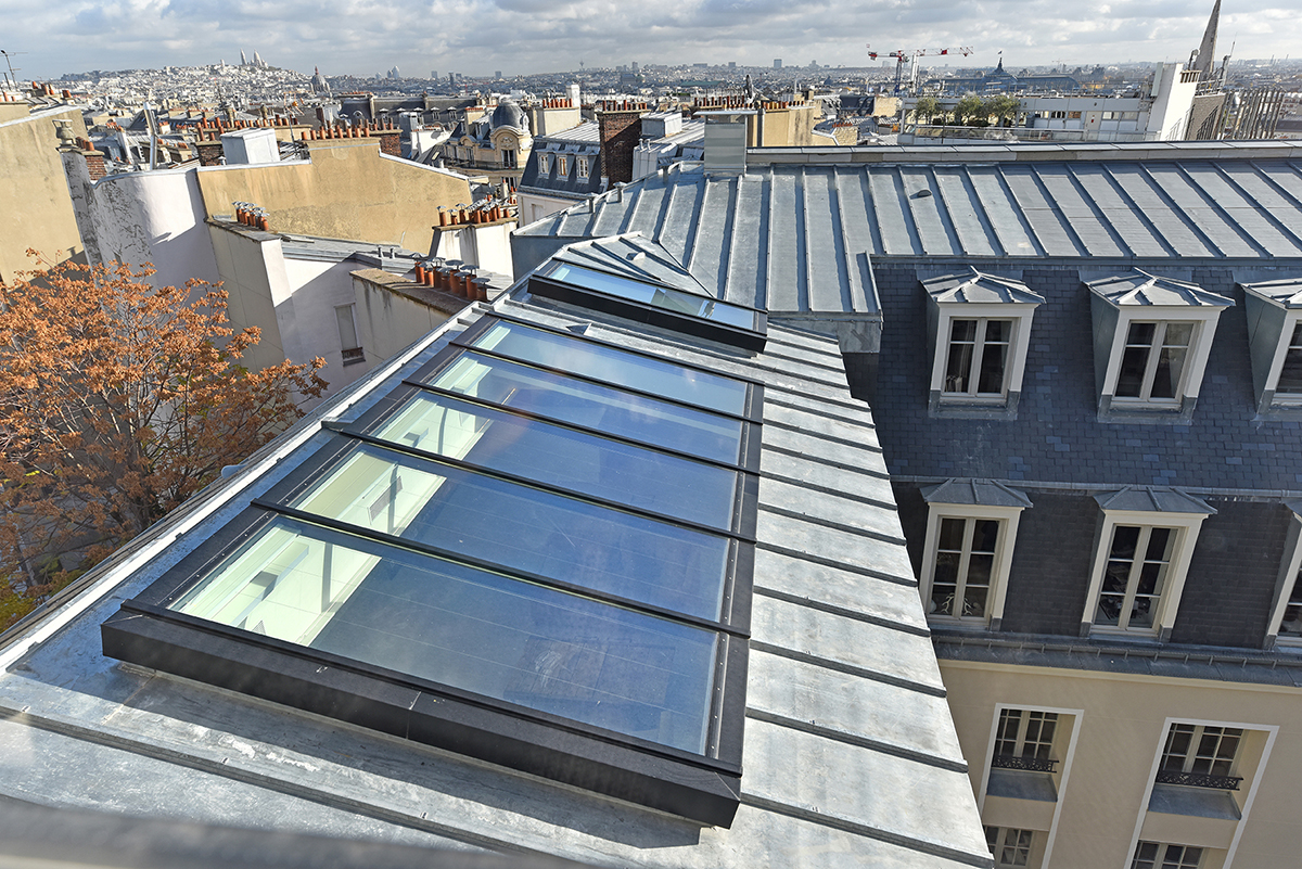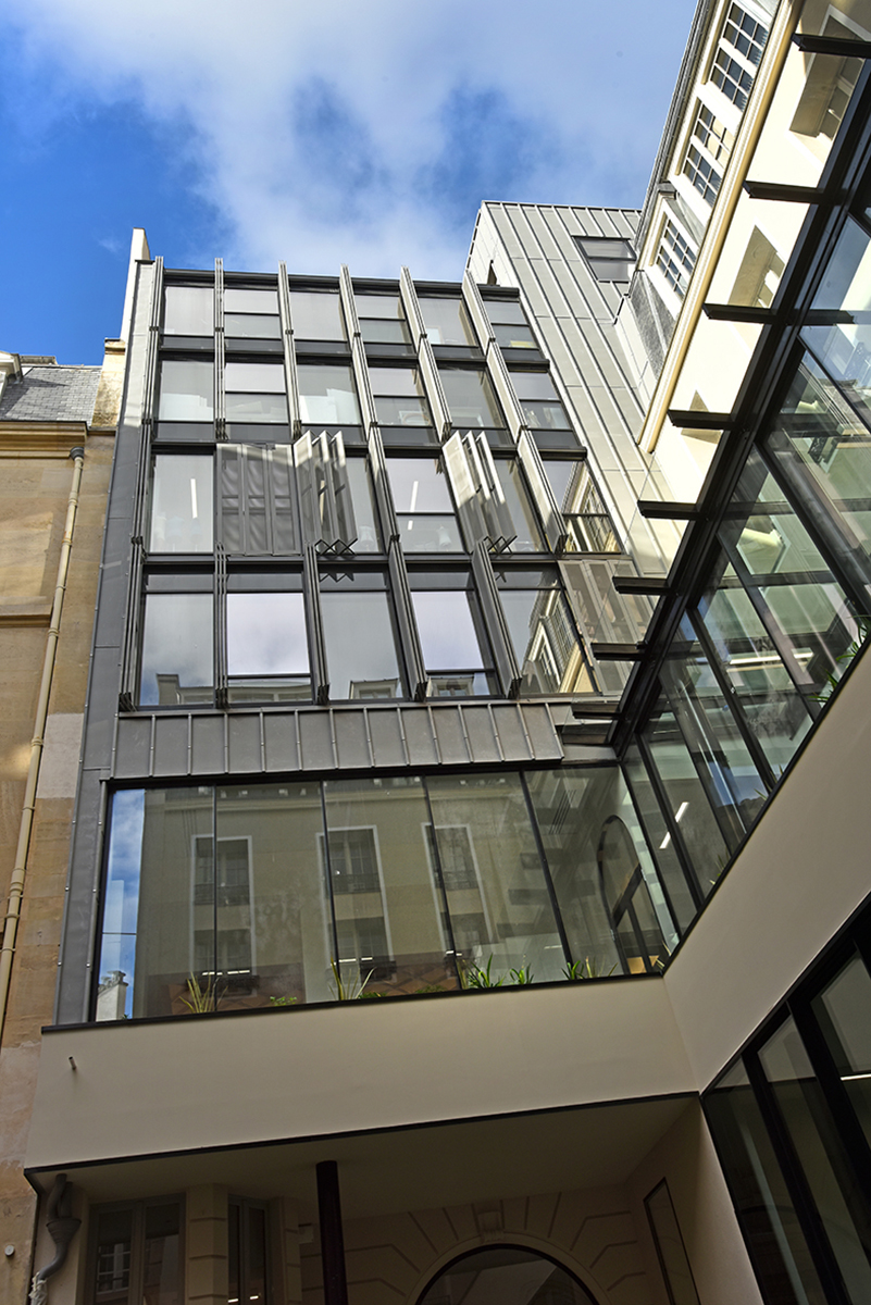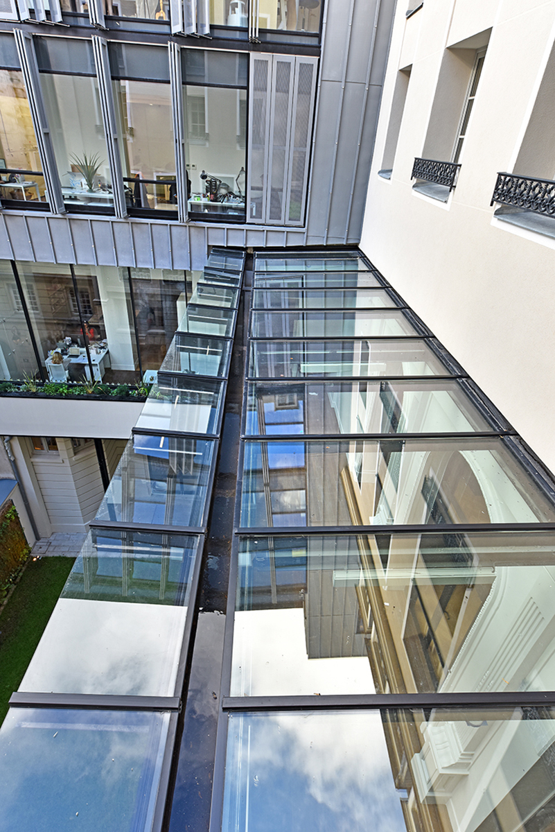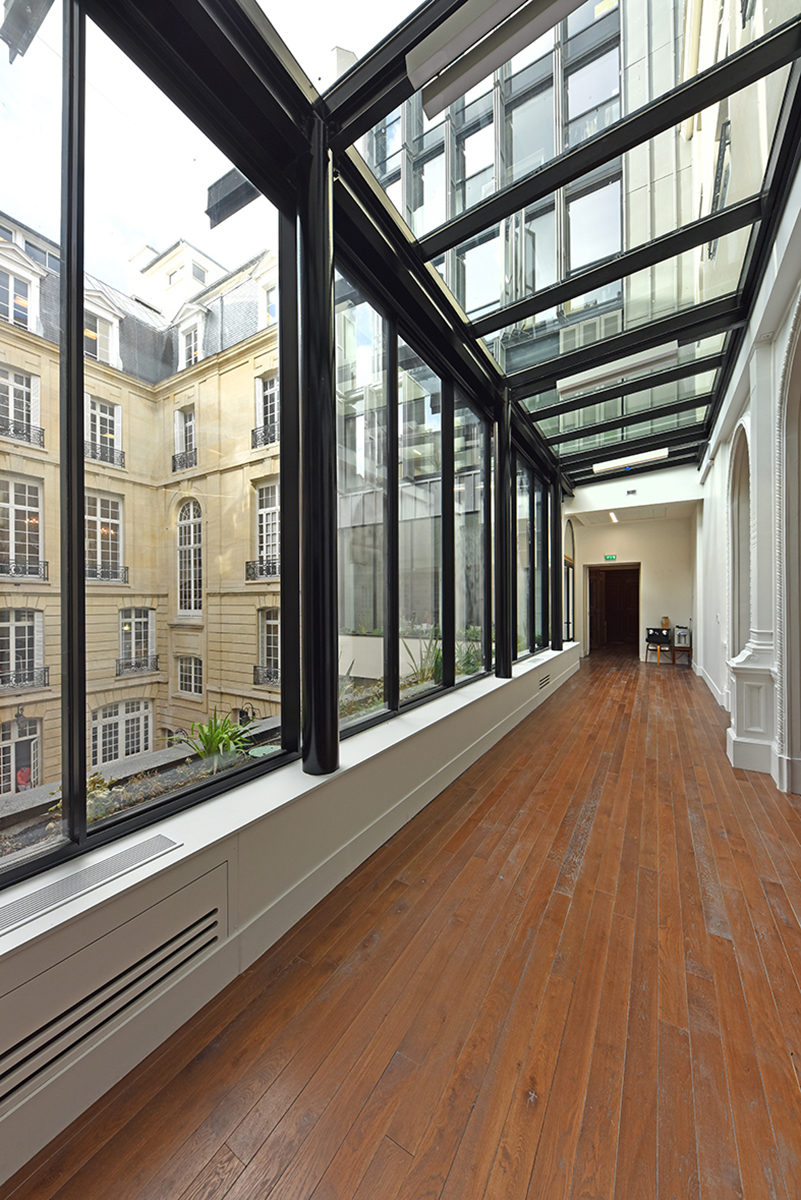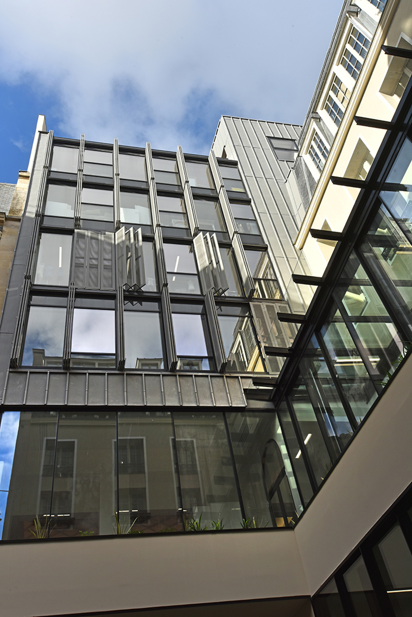 Iéna Iéna à Paris Client : Korus Date : 2018 Architecte : Vincent Herault Bureaux Paris 8ème mur rideau verrière volets pantographe Garde-corps